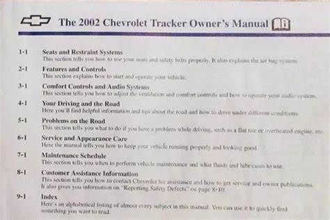 Currently you are looking with regard to an 2002 Chevy Chevrolet Tracker Owners Manual example that will we provide here within some type of document formats many of these as PDF, Doc, Energy Point, as well as images that will will make it easier for you to create an 2002 Chevy Chevrolet Tracker Owners Manual yourself. For a better look, you are able to open a few examples below. Each of the illustrations about 2002 Chevy Chevrolet Tracker Owners Manual with this site, we get from a number of sources so you may create a better file of your own.